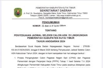 SANGATTA – Pemerintah Kabupaten Kutai Timur (Pemkab Kutim) resmi menyesuaikan jadwal seleksi Calon Aparatur Sipil Negara (ASN) tahun…