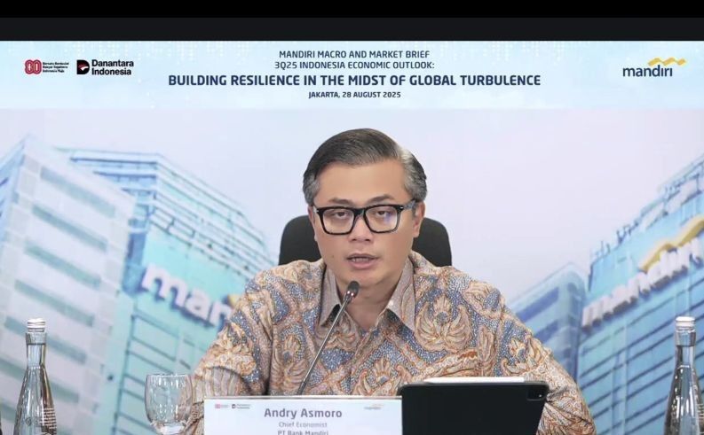 “Bank Mandiri memproyeksikan perekonomian Indonesia pada 2025, masih berpeluang tumbuh sebesar 4,96 persen, di tengah berbagai tekanan global maupun domestik,” kata Andry dalam Mandiri Economic Outlook Q3 2025 di Jakarta, Kamis (28/8/2025).